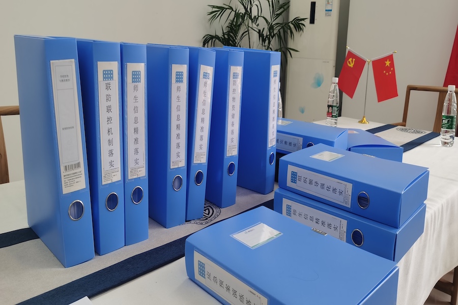防控督导组在我校会议室认真查阅了学校疫情防控和校园安全的各项资料。我校就防控物资准备、校园环境卫生、疫情防控演练、防控措施落实、安全隐患排
