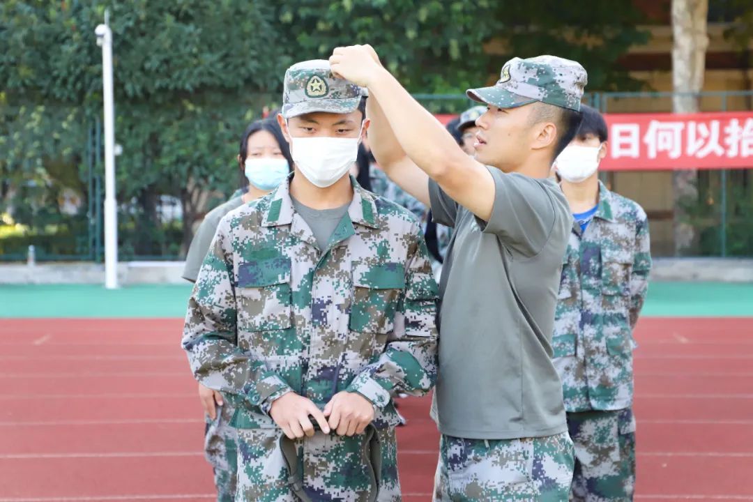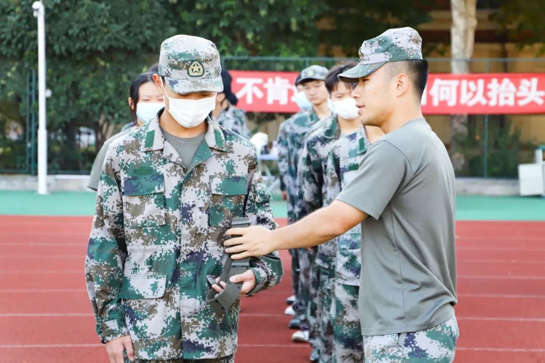 接着,有马教官向学生逐一讲解着装规范,从帽子佩戴、腰带佩戴、仪容仪表规范、口罩佩戴等方面做了全面细致的讲解演示,同学们积极认真的听取、配合,检查工作开展得十分顺利。