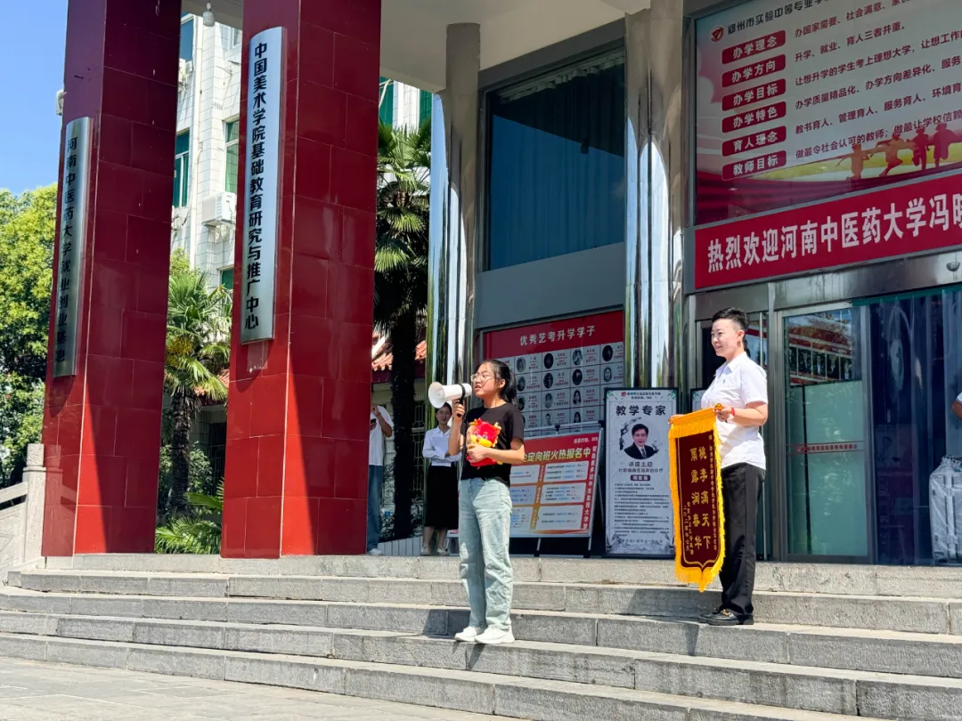 盛夏的阳光热烈而灿烂,在2024年这个意义非凡的夏天,我校2024届毕业生常雯倩及家长怀着满腔的感恩之情回到校园,为我校赠送锦旗,感谢学校的培养 。常雯倩同学在今年高考中取得673分,全省第12名的好成绩,已经被信阳师范大学录取!