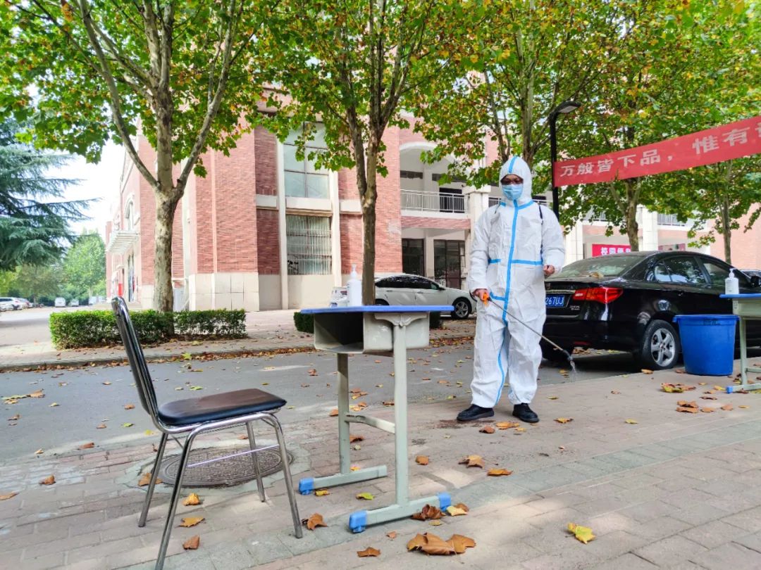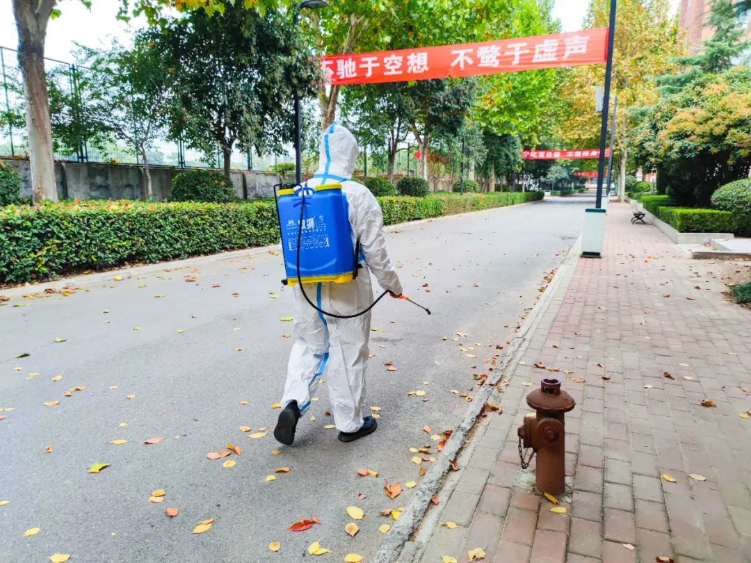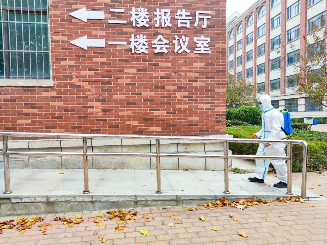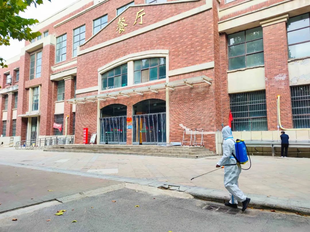 日常消杀工作,由工作人员带着消毒喷洒设备对校园进行全面消毒,使用配制好的消毒药液,认真地对学习大门、教学楼、办公楼、餐厅、操场、宿舍等地进行无死角的消毒作业,确保消毒充分,保障安全到位。