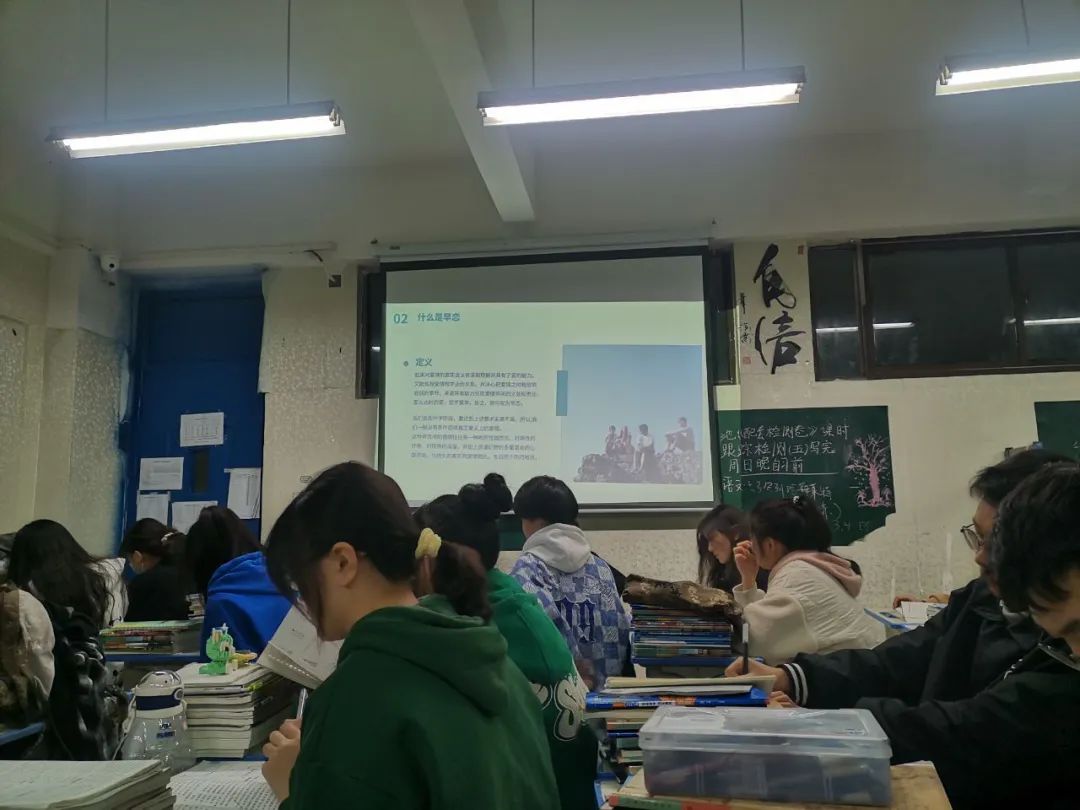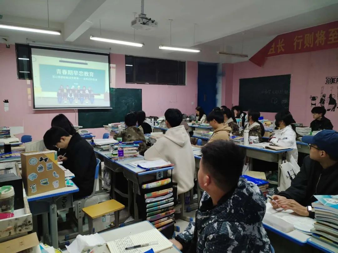 中学生处于身体及心理发展的特殊时期,为避免学生青春期相关的烦恼问题出现,进一步保障学生的身心健康,帮助学生正确认识早恋。我校各班利用晚自习的时间开展“青春期早恋教育”主题班会,班会由各班班主任主持。