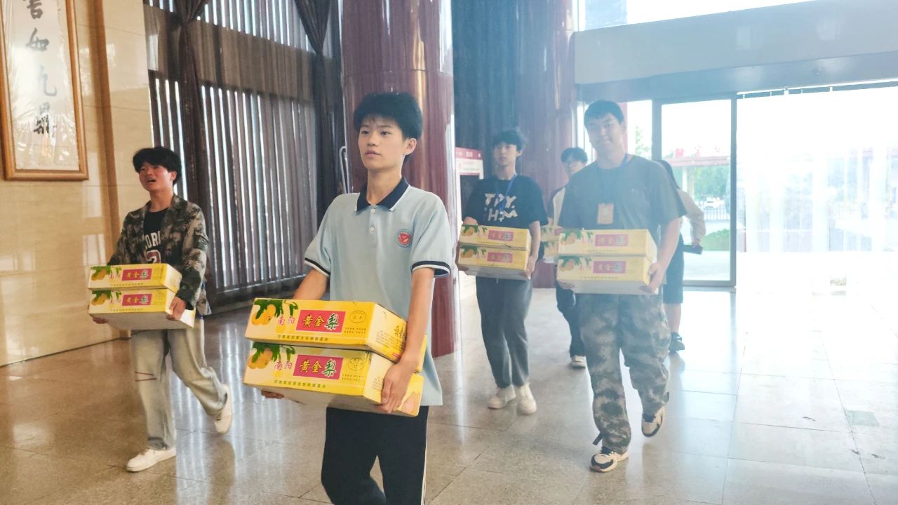 9月15日,我校影视2301班学生王鸿凯家长特地送来几十箱黄金梨,慰问学校的同学们,给同学们送去了一片清凉与爱心。学生家长表示,学校领导和老师的辛勤付出,为孩子提供了一个良好的学习环境,作为家长十分感动,感谢学校老师对学子们,无微不至地照顾与教导。