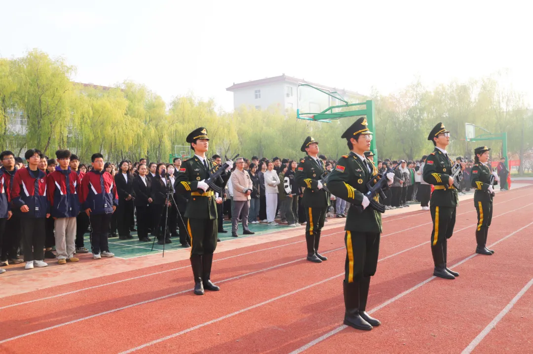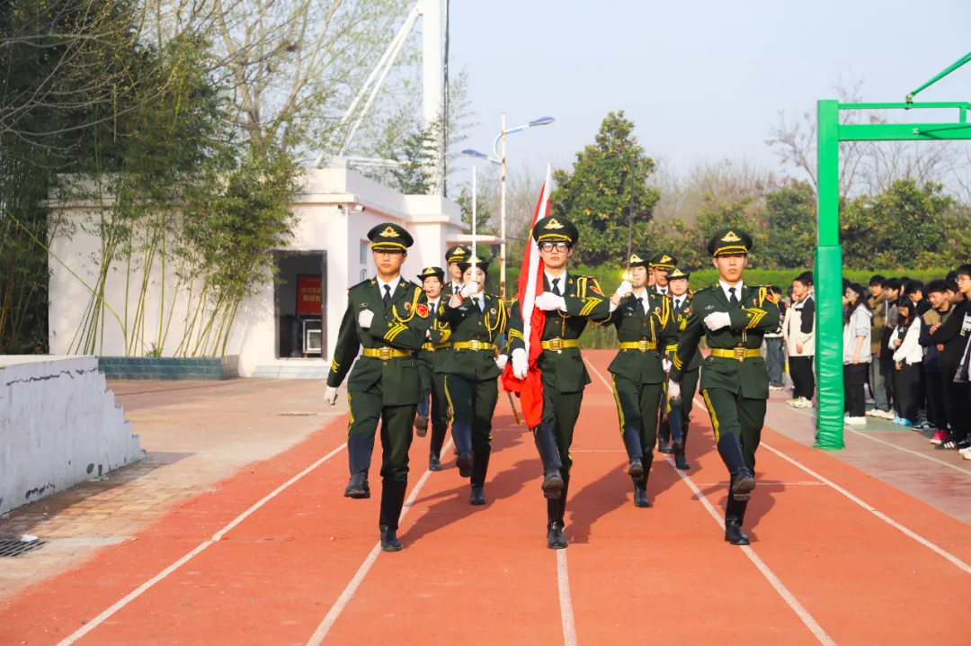 鲜艳的五星红旗高高飘扬,雄壮的国歌声响彻操场,全体师生、家长庄严肃立,行注目礼。护旗手们精神抖擞,身姿挺拔,迈着有力又坚定的步伐走向升旗台。