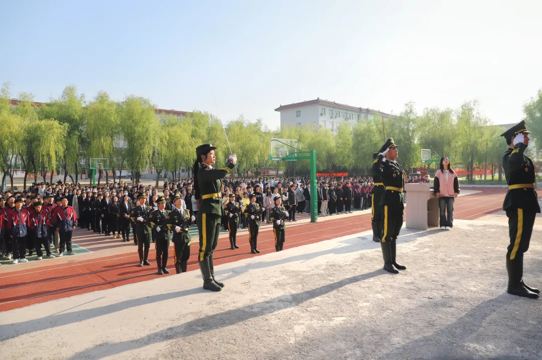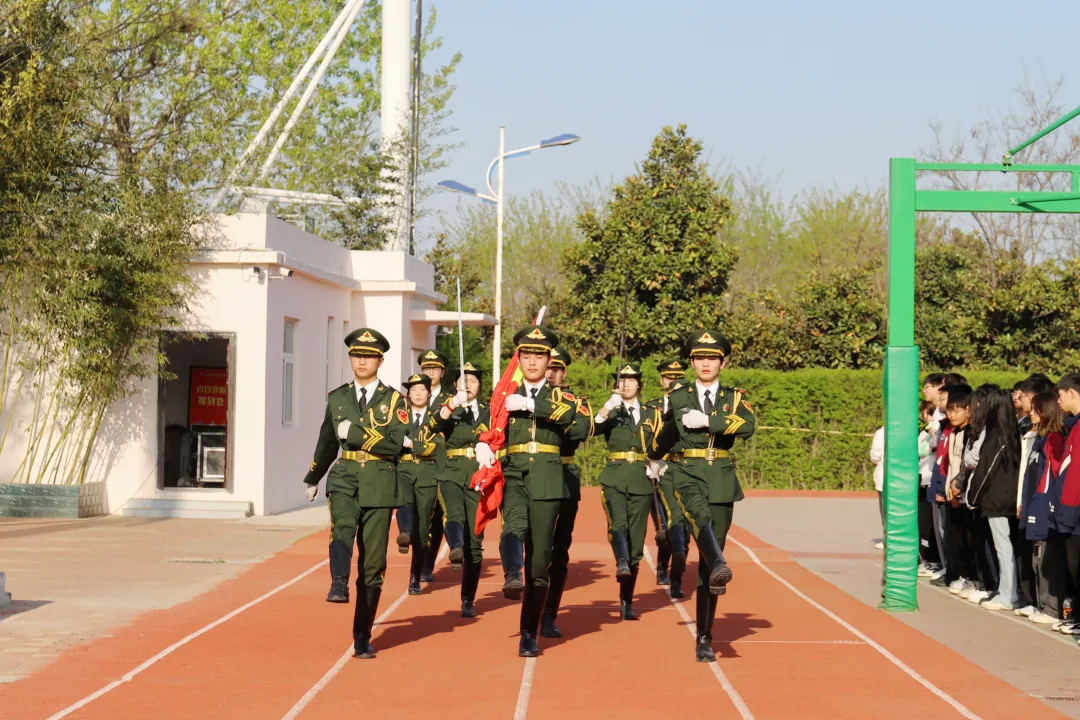 升旗仪式现场,国旗队的旗手们迎着朝阳,以饱满的热情庄严地护卫五星红旗。全体师生整齐列队,全体肃立,在庄严的国歌声中,升旗手振臂一挥,鲜艳的五星红旗冉冉上升,与蓝天白云交相辉映,同学们齐唱国歌,随着嘹亮的歌声响起,一个充满斗志与希望的新一周的美好的校园生活正在徐徐展开。