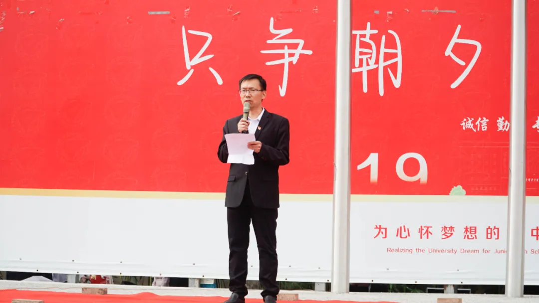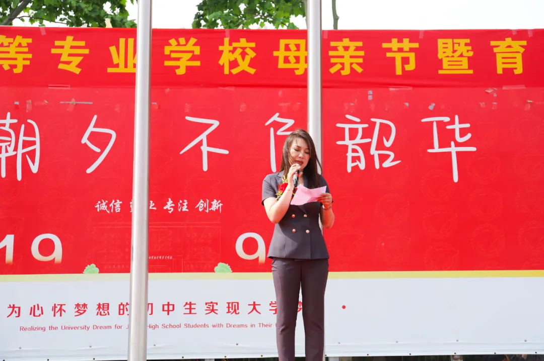 王兆法副校长登台致辞,他表示学校致力于提供优质教育,培养学生品德、智慧,希望学生懂得感恩,珍惜时光,努力学习,回报母亲。