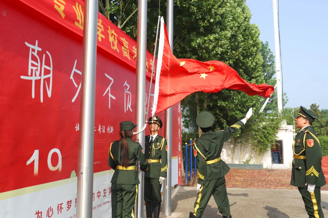 展英姿,挺傲骨,步履铿锵;升国旗,奏国歌,红旗飘扬。国旗班的旗手们个个精神抖擞,神采奕奕,以饱满的热情庄严地护卫五星红旗。伴随着激昂雄壮的国歌声鲜艳的五星红旗,冉冉升起,我校全体师生,整齐列队,庄严肃穆向国旗行注目礼,向祖国表达崇高的敬意,以昂扬之姿开启全新的一周。