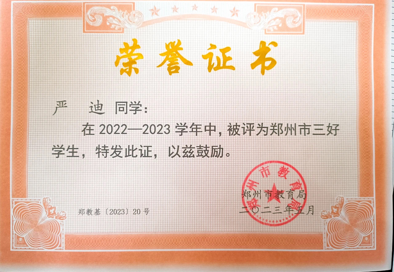 祝贺!我校学子2022-2023年度获评郑州市三好学生、优秀学生干部