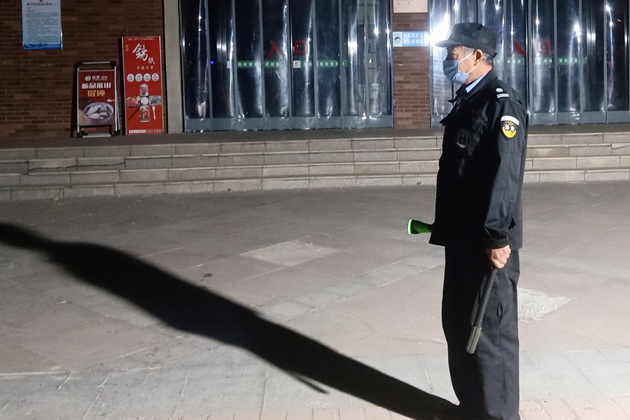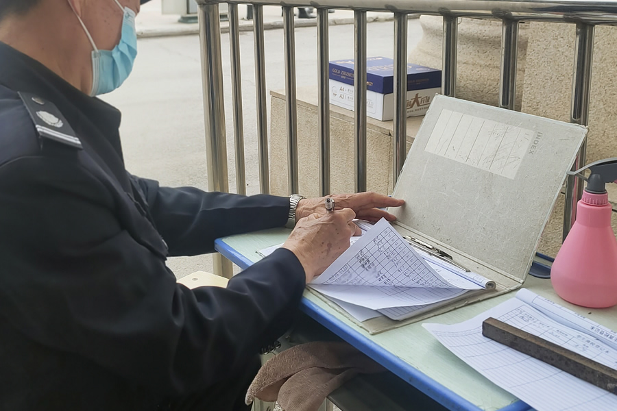 学校门口的保卫室里,会有24小时的值班人员不间断的轮班职守。每天凌晨两点,保安人员会在校园里进行全校巡逻。虽然临近夏天,但近几日骤然降温,使夜间的风也多了几分寒意,而他们只心心念念着为我们巡查校园的每一个角落,排除一切可能存在的危险。接班人员在检查完体温检测表和晚间情况记录表后才算完成对接。