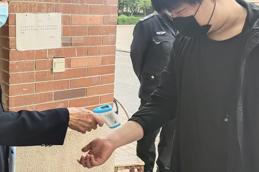 通过我们的交谈得知,在这些保安人员的心里,校园的安全是自己最担心的事情。疫情防控期间,学校门口是我们学校防疫的重要枢纽点。他们始终坚持严格把守校门,工作人员进出校园需要登记信息、扫健康码,测量体温,进校车辆也需要进行消毒登记。至于外来人员,更是不准随意进出。