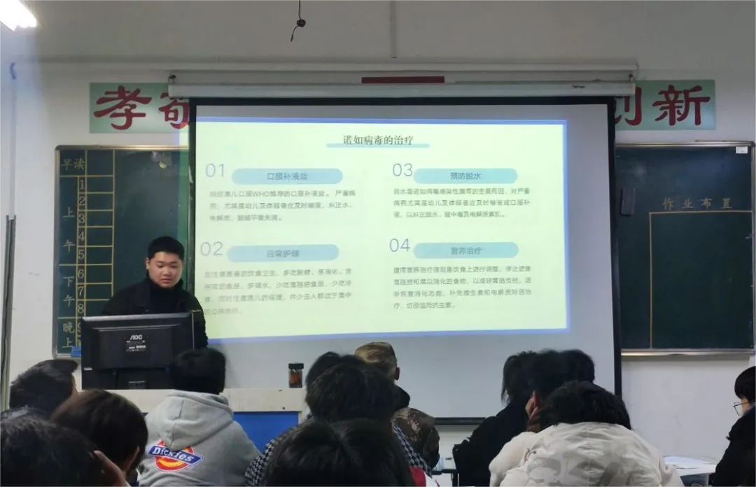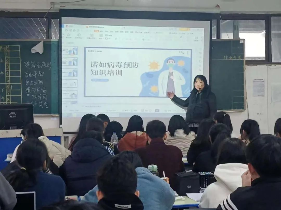 近期,诺如病毒进入高发期,且诺如病毒主要发生在学校和托幼机构等人群聚集场所,为做好诺如病毒防控工作,保障在校学生的健康和安全,增强学生对诺如病毒的防范意识,坚持“早诊断、早报告、早隔离、早治疗”的原则。学生处联合教务处,利用晚自习在各班开展了“诺如病毒预防知识培训”主题班会。