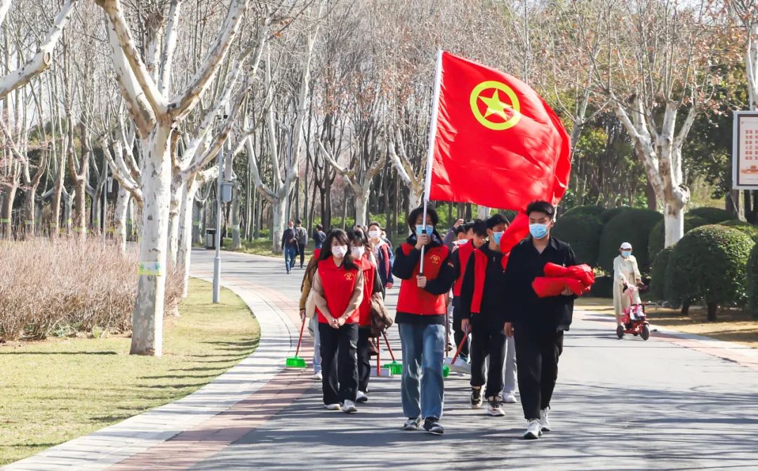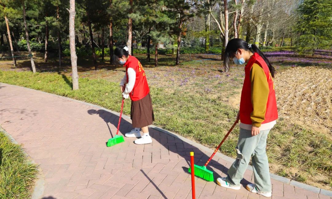 我校“学雷锋”的志愿者们在校前广场集合,大家带上清洁工具,集体出发来到郑州市植物园捡拾垃圾保护环境公益活动。