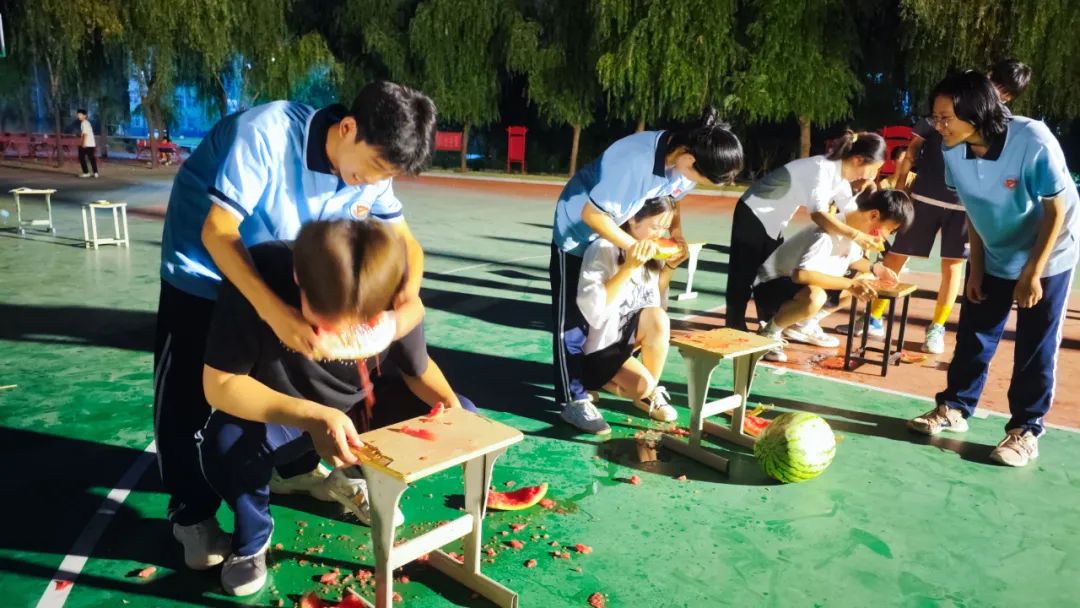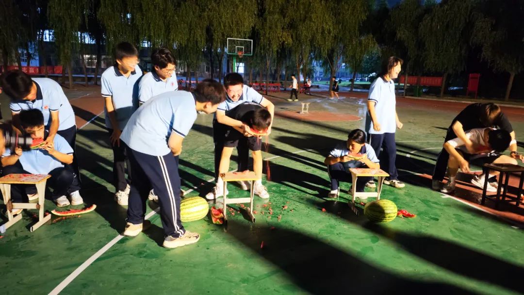 晚饭后,沐浴着和煦的微风,伴随着响亮的口号和整齐的步伐,同学们来到了操场。本次趣味i活动一共四个项目,分别是蒙目闯关、一圈到底、玩转呼啦圈和吃西瓜比赛。在本次的趣味活动中,学生们踊跃报名,积极参加活动,让师生们在紧张的工作学习生活之余体会到运动的快乐。随着裁判一声令下,运动场上气氛热烈、人声鼎沸,同学们更是能尽情宣泄着自己的激情.....