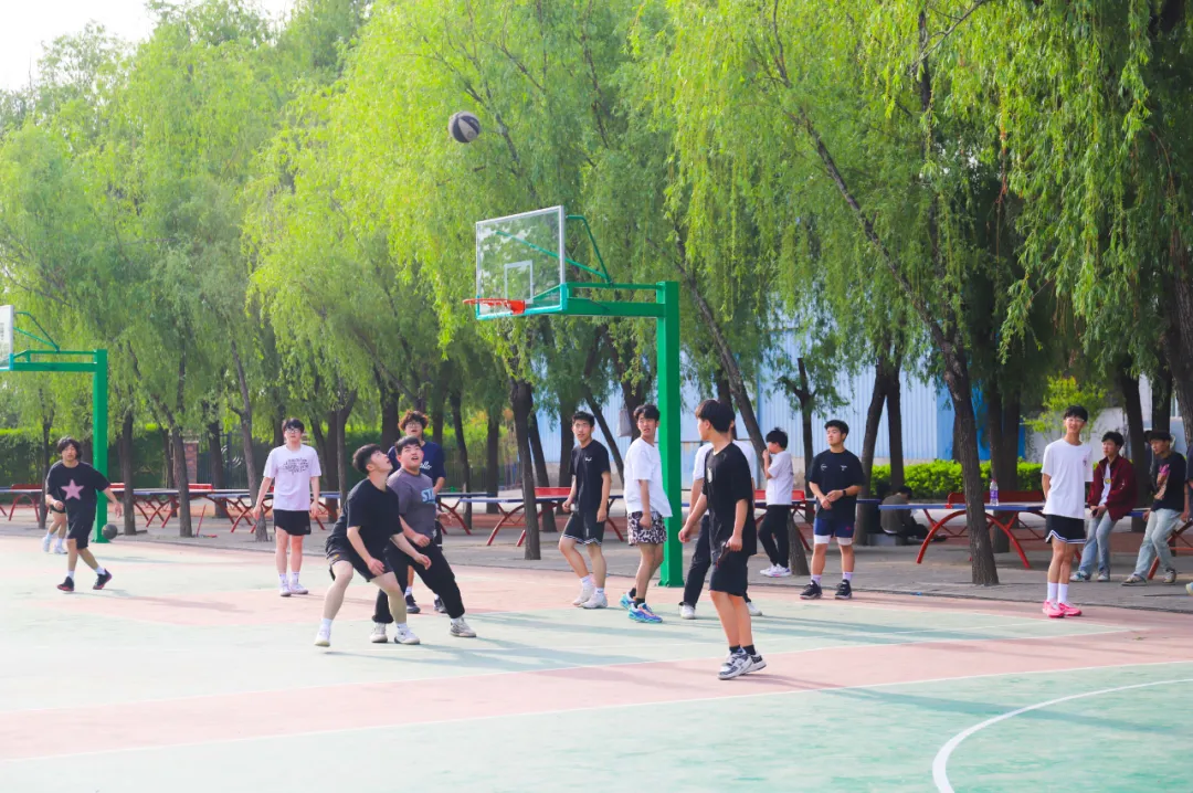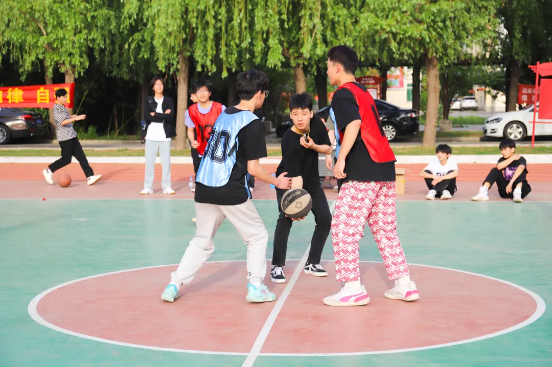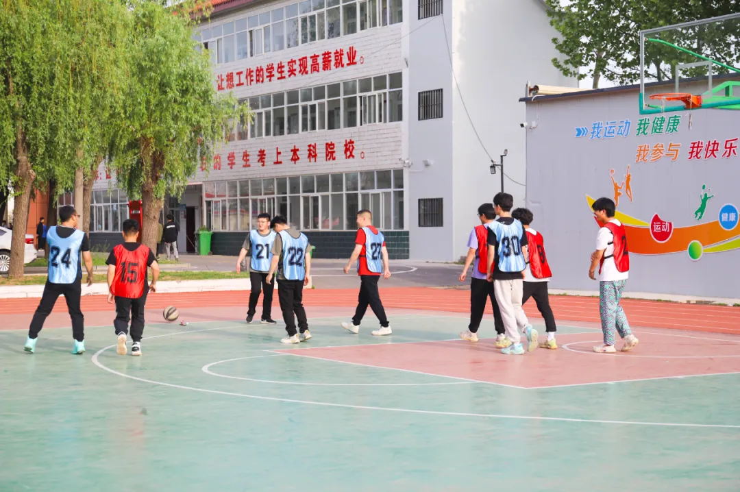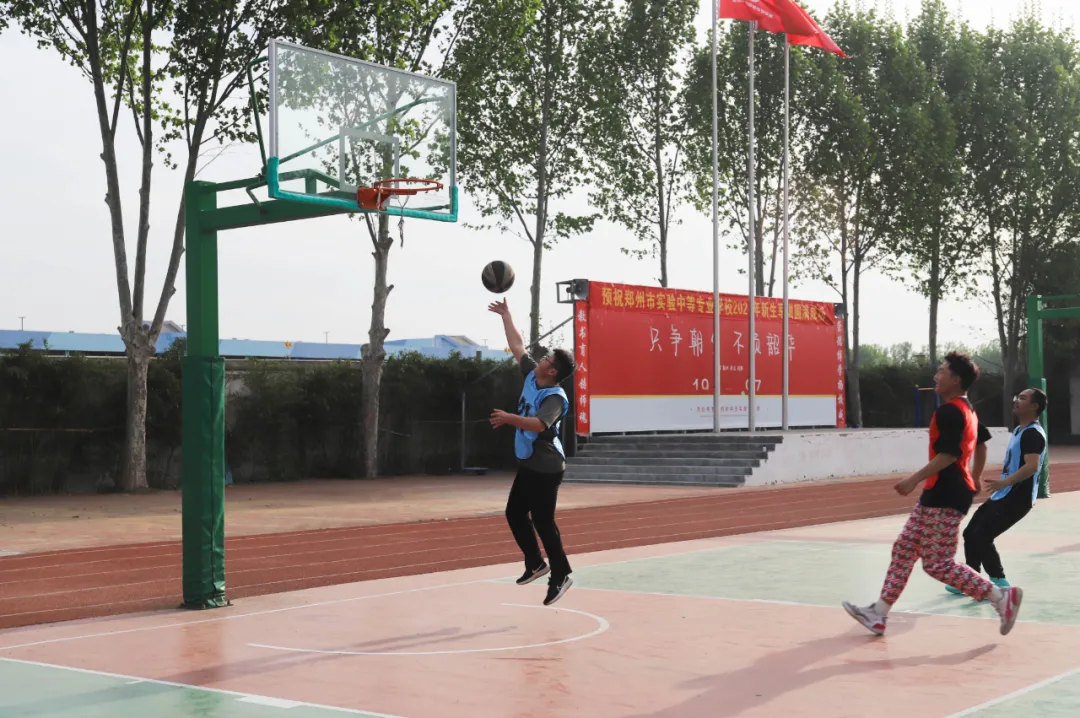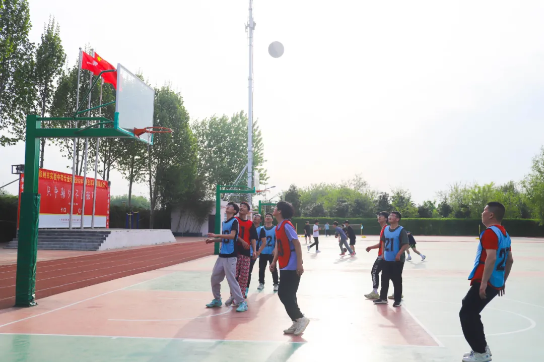 在郑州市实验中等专业学校的校园里,阳光明媚的午后,一场精彩绝伦的师生篮球友谊赛近日激情上演。