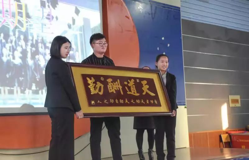 郑州市实验中等专业学校对创业学子的扶助不遗余力,为此设立30万元创业基金,为学生们创业提供大力支持!并为每一名创业学子发放“天道酬勤”的牌匾。在此祝愿:杨英杰同学能够事业有成,前程远大!